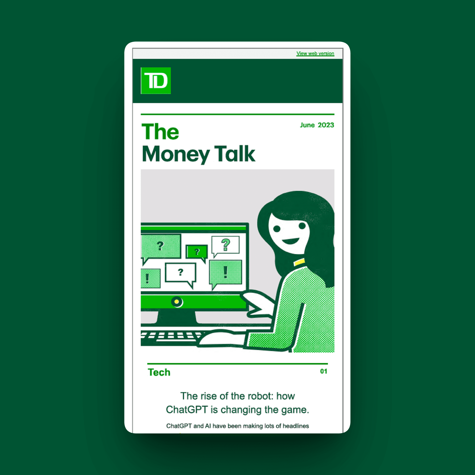 At Cossette, I revamped TD's Saving & Investing Newsletter to connect better with younger audiences.
