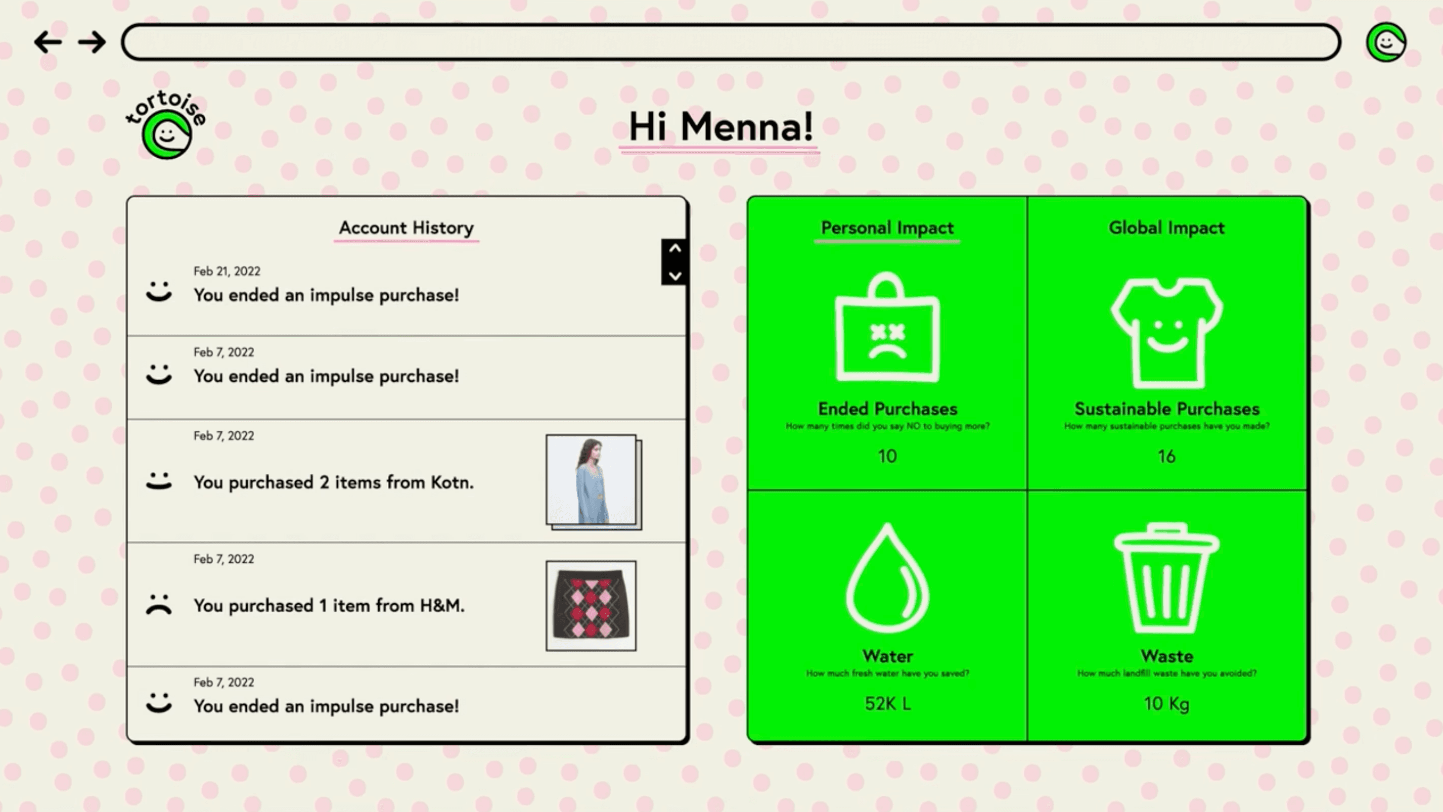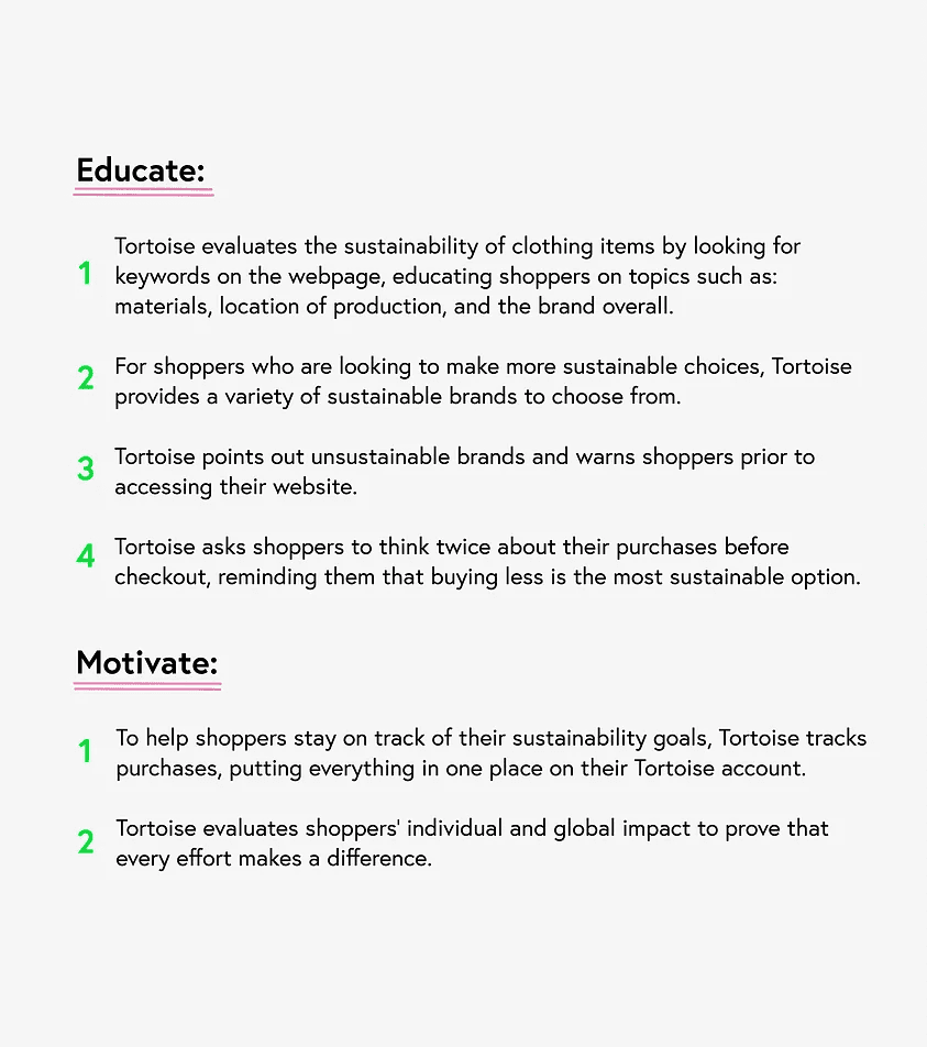 Tortoise is a web extension that helps fashion consumers navigate the complexities of sustainable fashion so they can put sustainable practices into action.